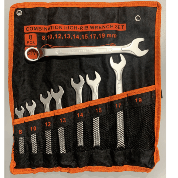 KIT 8 CHIAVI COMBINATE POLIGONALI FISSE CURVE 8-19 MM ACCIAIO CR-V ANELLO 547XI