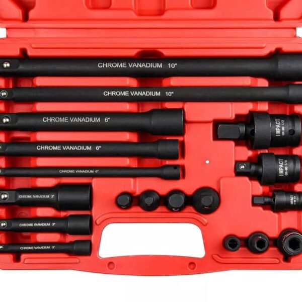Kit prolunghe di estensione rinforzate 18pz adattatori 1/2″ 1/4″ 3/8″ prolunga 75 150 250 mm RO