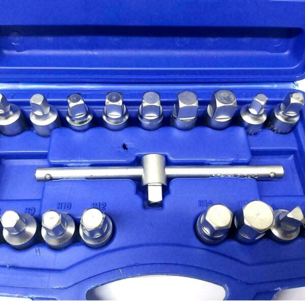 SET BUSSOLE ESAGONALI 17 PZ 1/2″ 8 24 MM CRICCHETTO PROLUNGA CASSETTA MOLL
