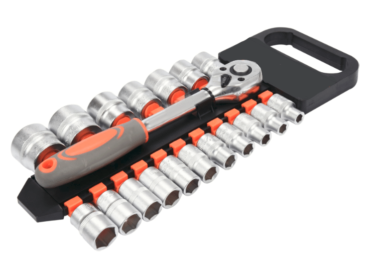 Pratico set da 19 pezzi di chiavi a bussola a cricchetto reversibile esagonali da 1/2″