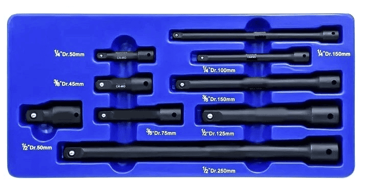 Affronta anche i lavori più impegnativi con questo set di prolunghe rinforzate da 9 pezzi, progettato per garantire resistenza, durata e massima affidabilità