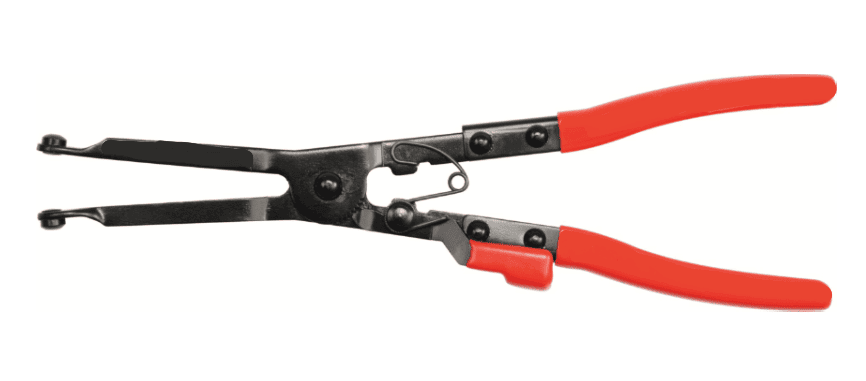 Pinza appositamente studiata per separare e mantenere aperte le fascette stringitubo di scarico durante le operazioni di rimozione della marmitta