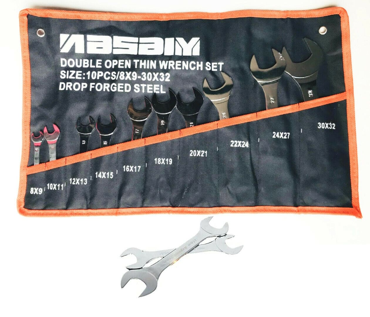 SET CHIAVI A FORCHETTA FISSE SOTTILI 8 32 MM PIATTE 10 PZ MECCANICO FODERO 468