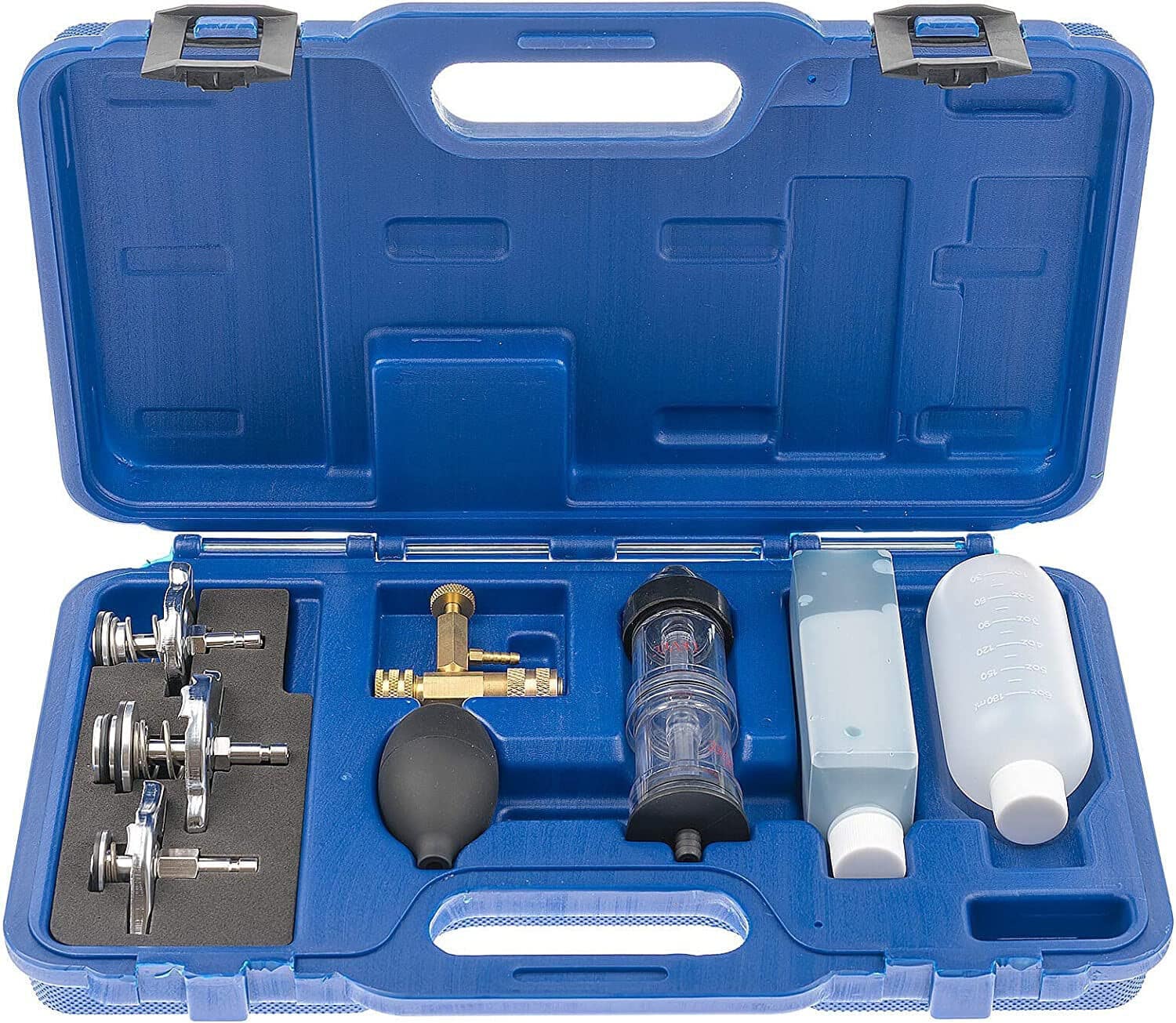 - Set tester con ventosa, 250 ml di contrappeso e bottiglia vuota, adattatore per attacco rapido ai 3 adattatori a baionetta completamente assortiti in valigetta di plastica