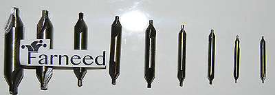 Serie da 9 punte a centrare con fianchi diritti e anglo di svasatura 60°. Realizzate in acciaio HSS. La confezione comprende le seguenti misure: 1,0; 1,5; 2,0; 2,5; 3,15; 3,5; 4,0; 5,0; 6,0 mm.